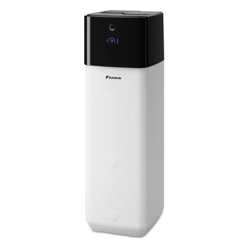 Тепловий насос відзначається низьким рівнем шуму, економним енергоспоживанням і автоматичним погодозалежним регулюванням. Користувач може керувати системою через мобільні додатки або безпосередньо з панелі керування Daikin Eye. Доступне також голосове управління через популярні сервіси. Модель підтримує інтеграцію з фотоелектричними панелями та сонячними колекторами, що знижує витрати на експлуатацію та дозволяє максимально використовувати зелену енергію. Вбудований бак забезпечує стабільний запас гарячої води для щоденних потреб.