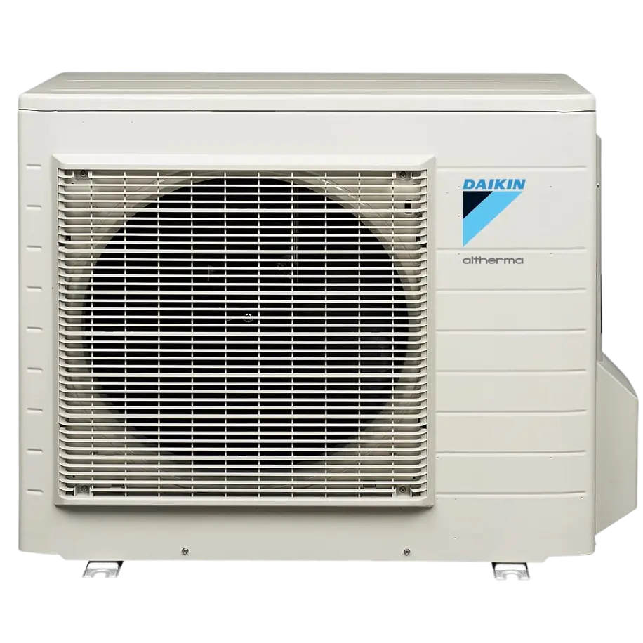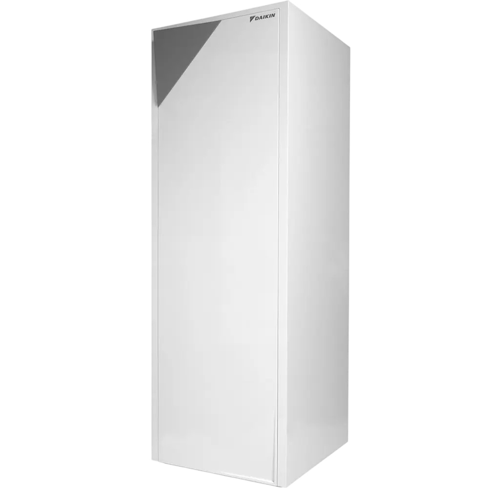 Daikin Altherma EHVH16S18CB3V/16S26CB9W + ERHQ016BV3 — тепловий насос, який обирають у тих випадках, коли будинку потрібна не просто система опалення, а джерело тепла з запасом потужності. Внутрішній блок виконаний як єдиний підлоговий модуль, всередині якого вже встановлений бак для гарячої води. Тому вам не потрібно окремо підбирати бойлер, продумувати його підключення та шукати для нього місце.