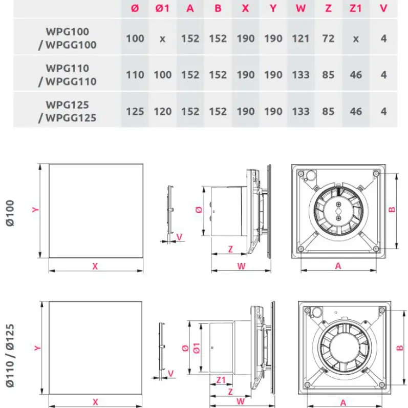Серия включает модели разного диаметра - 100 и 125 мм. Меньший диаметр подходит для компактных ванных или туалетов, больший - для просторных комнат и кухонь. Все вентиляторы работают стабильно, без перебоев, и рассчитаны на ежедневное использование.