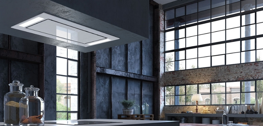 Кухонная вытяжка Faber HEAVEN 2.0 полностью встраивается в потолок, позволяя сэкономить полезное пространство над рабочей зоной.