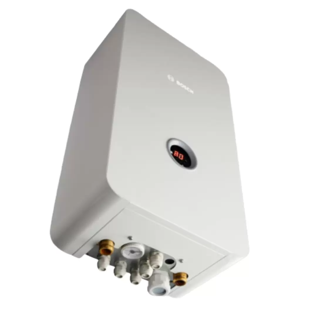 Bosch Tronic Heat 3500 - электрический котел для отопления или подготовки горячей воды. Оборудование выполнено в сером цвете и имеет стильный дизайн, что позволит использовать его в различном интерьере.