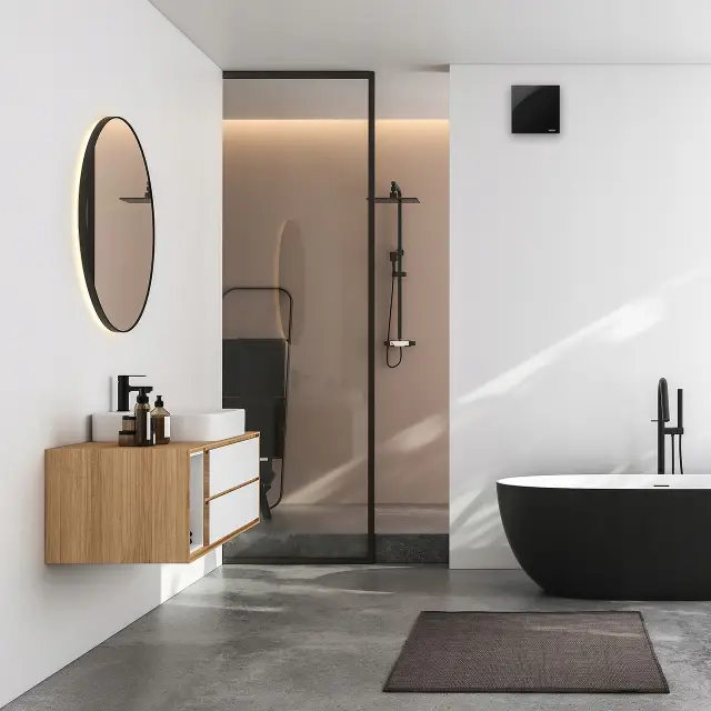 Но при выборе вытяжных вентиляторов в санузел важно учитывать не только технические характеристики, но и внешний вид устройства. Цвет корпуса, форма панели и общий стиль должны гармонировать с интерьером ванной комнаты или туалета. Особенно, если вентилятор будет размещаться на виду — на стене или потолке. Поэтому наиболее востребованы среди покупателей модели в белом и черном цвете, с глянцевой или матовой поверхностью, а также с округлыми или строгими геометрическими линиями.